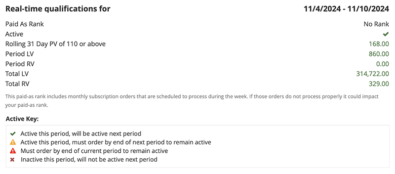 Be active (minimum of 55 PV every 31 days) in the qualification period